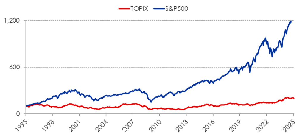 (TOPIXとS&P500は、株式市場全体を把握するために用いられる、代表的な株価指数の一つ)